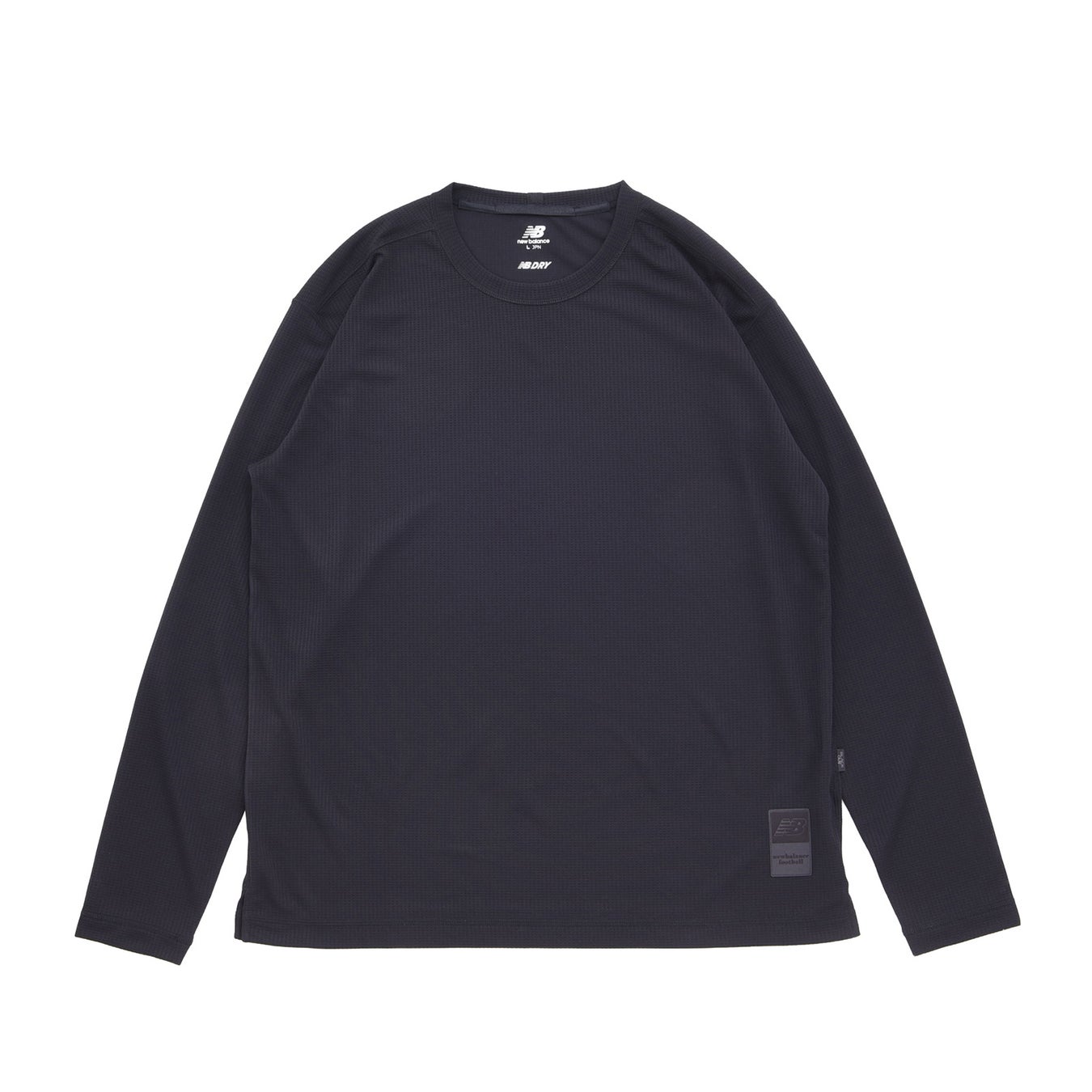 スタイリッシュな移動着やカジュアルウエアとして提案するプレミアムコレクションのロングスリーブTシャツ。英国軍のサーマルウエアからインスパイアされたデザインを、風合いのある表情とさらりとした着心地を実現するポリエステル100%の冷感メッシュで展開します。NBロゴとユニオンジャックのウーブンラベルなど細部まで洗練されたスタイルで仕上げました。