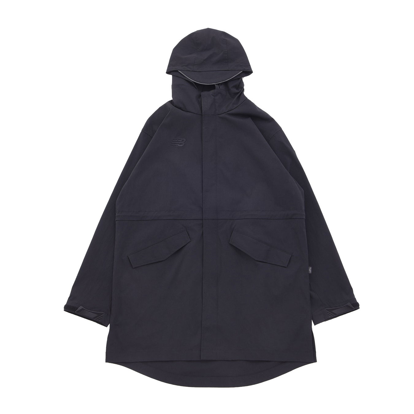 スタイリッシュな移動着として提案するプレミアムコレクションコート。抜群の伸縮性、撥水性、防風性を発揮する4WAYストレッチナイロンを使用し、英国軍のミリタリーコートからインスパイアされたデザインで展開します。折り返し可能な高い襟、キャップ着用のまま被れる外付け仕様のフード、スラッシュポケット、NBロゴとユニオンジャックのウーブンラベルなど細部まで洗練されたスタイルで仕上げました。