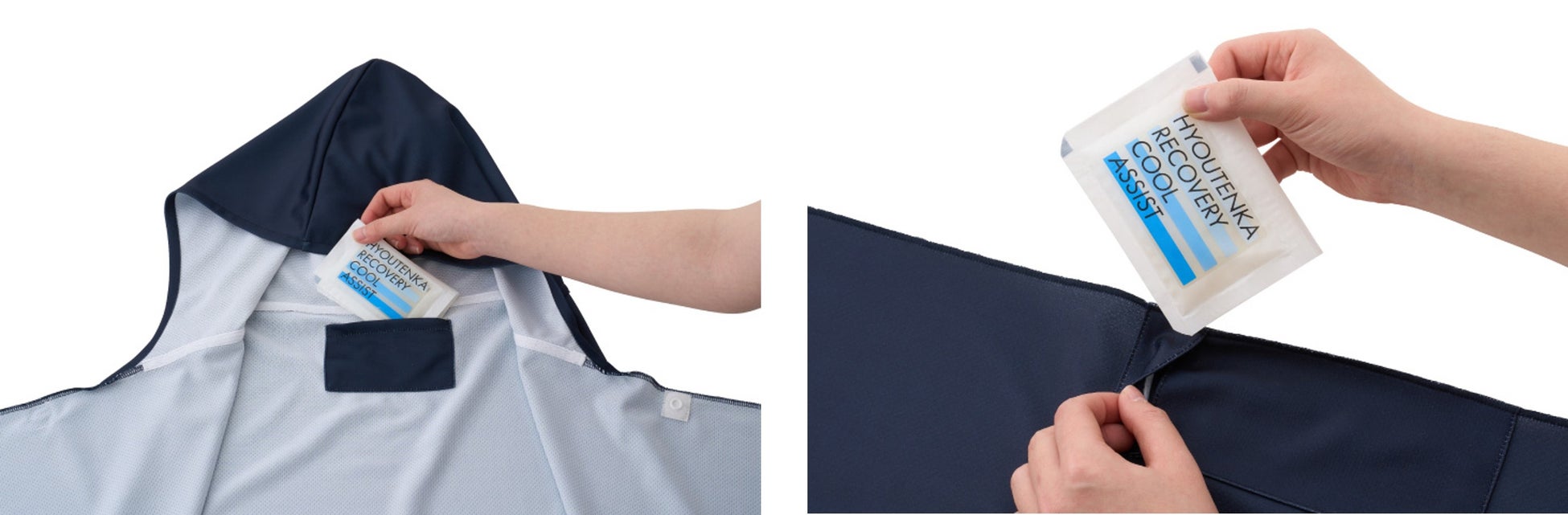 首元には保冷剤を入れるポケットを搭載しており、別売りの「氷点下リカバリー・クールアシスト」を併用すると、さらに冷却力UP。