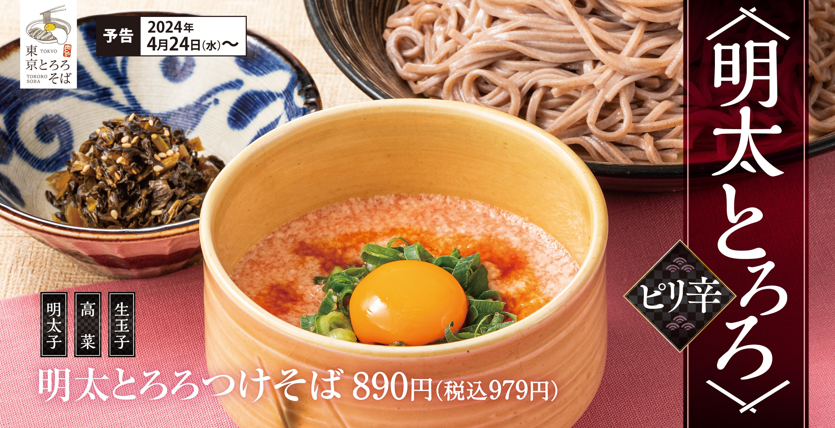 アークランドサービスホールディングス株式会社の子会社、「肉めし岡もと」などを運営する株式会社トビラダイニング(本社:東京都千代田区/代表:大内 勇一)は、とろろそば専門店「東京とろろそば」全店にて、春らしく華やかな見た目とピリ辛で食欲そそる「つけそばシリーズ」の新作「明太とろろつけそば」を2024年4月24日(水)より期間限定で販売開始いたします。