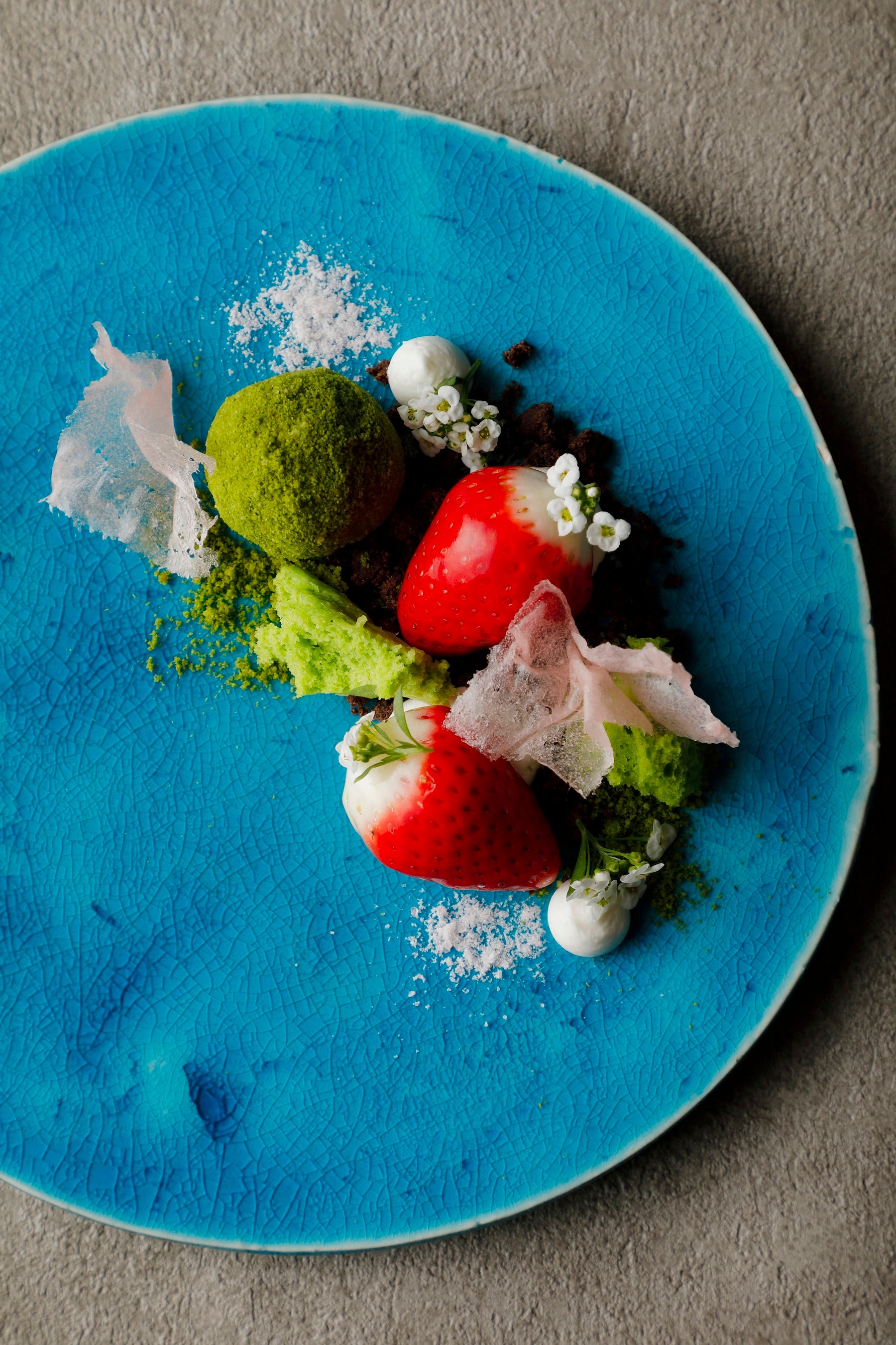 春の彩りに心躍る「帆立貝 山羊 紫蘇」は、ヤギの乳から作られる濃厚なシェーブルチーズのエスプーマと、大葉の爽やかな香りが響きあう一品です。「丹波鹿 京菜花 編笠茸」は、編笠茸、菜の花、そら豆とともに春の山麓の滋味を伝えます。デザート「苺 よもぎ 生姜」は、ソースをしのばせた苺と生姜のパルフェグラス、蓬の求肥。森の景色に苺の香の蝶も舞い降ります。シーンに合わせて選べる多彩なコースやアラカルトでお愉しみください。