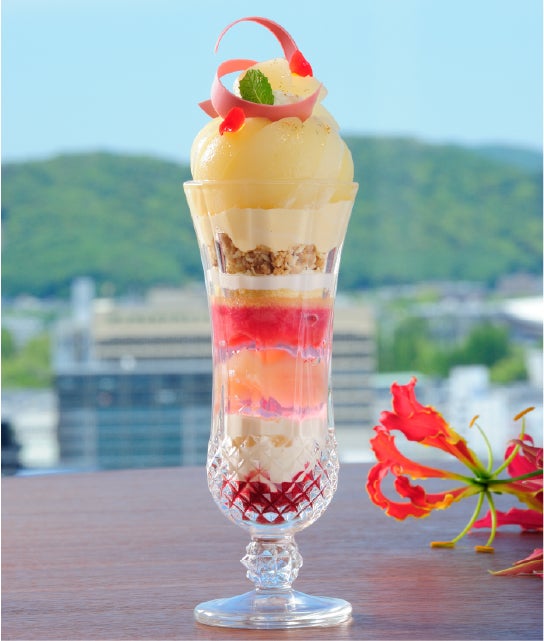1階ロビーラウンジ「ルミエール」にて、岡山県産の白桃を使用した「白桃パフェ 」をご用意いたします。岡山ならではの味わいをお楽しみいただきながら、地産地消によって輸送に伴うCO2排出量を削減にも貢献する一品です。