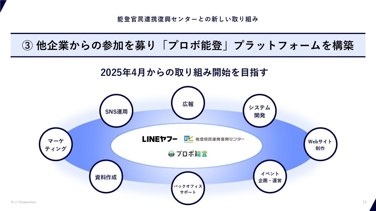 そしてこの度、能登半島地震から1年が経過し、復興のさらなる推進に向けて、LINEヤフーと能登官民連携復興センターは、石川県能登地域の人材不足の解消に向けた取り組みに係る基本合意書を締結しました。
