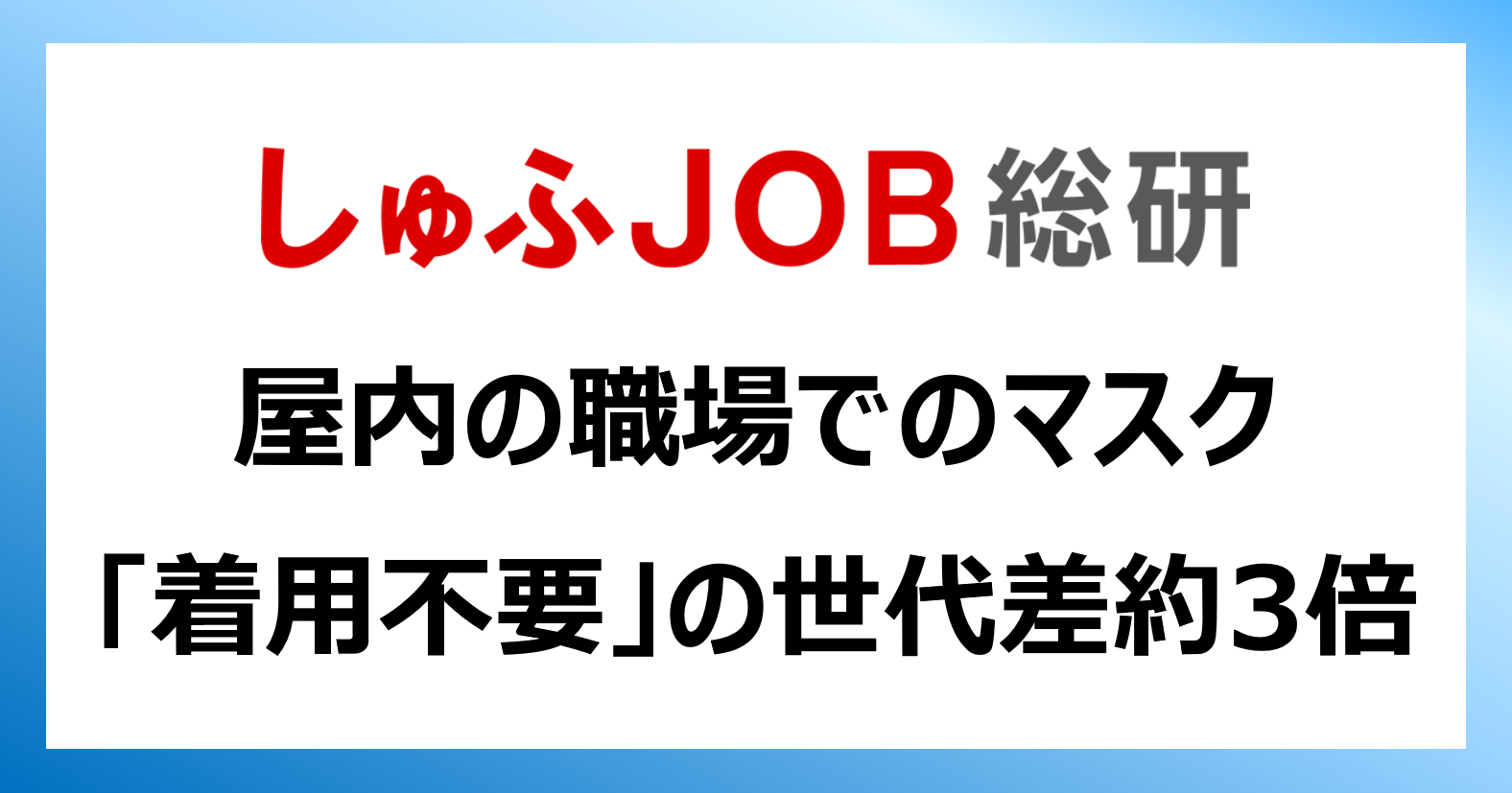 距離関係なく「着用しなくてよい」30代以下:19.4%、60代以上:7.3% ~しゅふJOB総研調査~