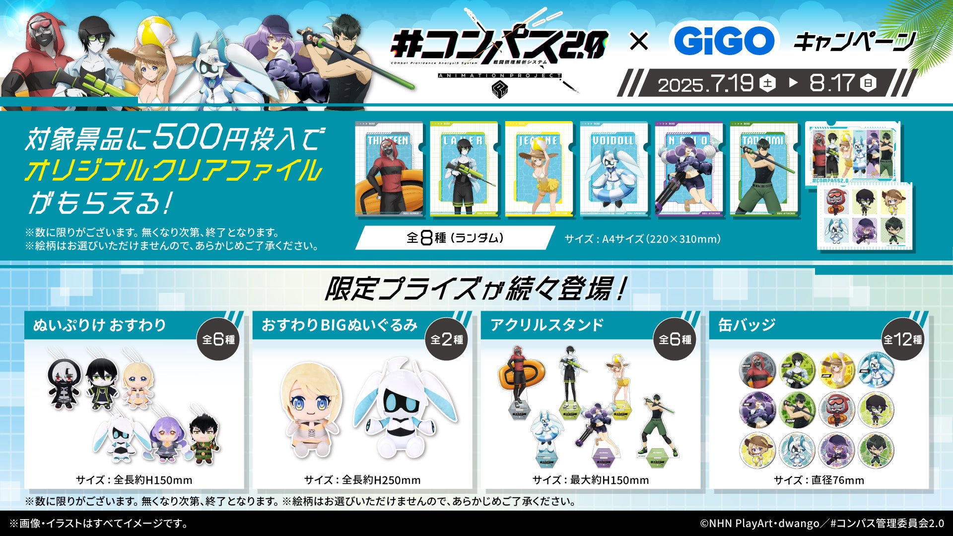 株式会社GENDA GiGO Entertainment(本社:東京都港区 代表取締役社長:二宮 一浩 以下「当社」)は GiGOグループのお店におきまして、TVアニメ『#コンパス2.0 戦闘摂理解析システム』とコラボした「TVアニメ『#コンパス2.0 戦闘摂理解析システム』 × GiGO キャンペーン」を2025年7月19日(土)から開催いたします。