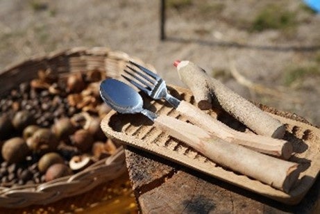 ナイフで削ってつくるカトラリーや色鉛筆は〝削り馬〟という作業台に 固定するのでお子さまも体験できます。