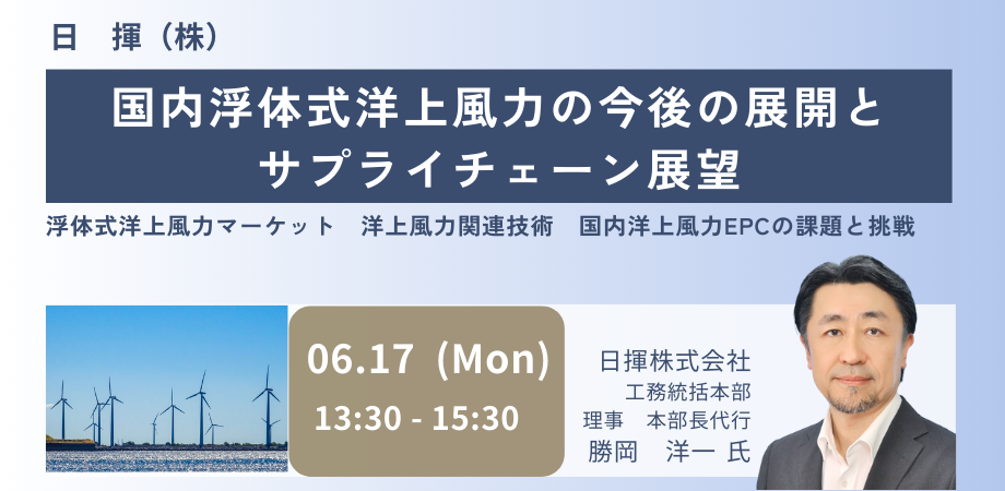 【JPIセミナー】日揮(株)「国内浮体式洋上風力の今後の展開とサプライチェーン展望」6月17日(月)開催