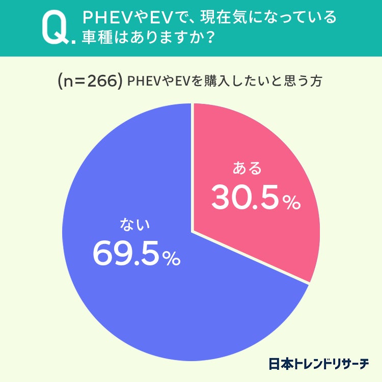 ■30.5%が、PHEVとEVで現在気になっている車種が「ある」