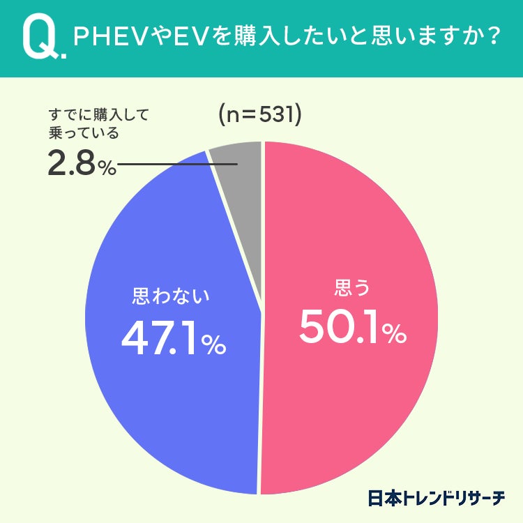 50.1%とおよそ半数以上の方が「PHEVやEVを購入したいと思う」と回答しました。