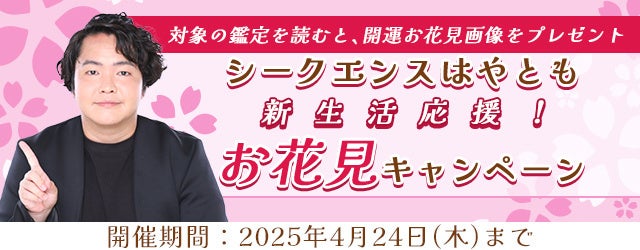 株式会社レンサ(本社:東京都渋谷区、代表取締役:武井哲也)は、2025年3月28日(金)より、運営する公式占いサイト『シークエンスはやともの占い』にて、「新生活応援!お花見キャンペーン」の提供を開始いたしました。