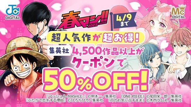 『ONE PIECE』や『【推しの子】』など4,500作品以上がクーポンで50%OFF!「集英社×ebookjapan 春マン!! 2023 クーポンキャンペーン」が4月4日からスタート!