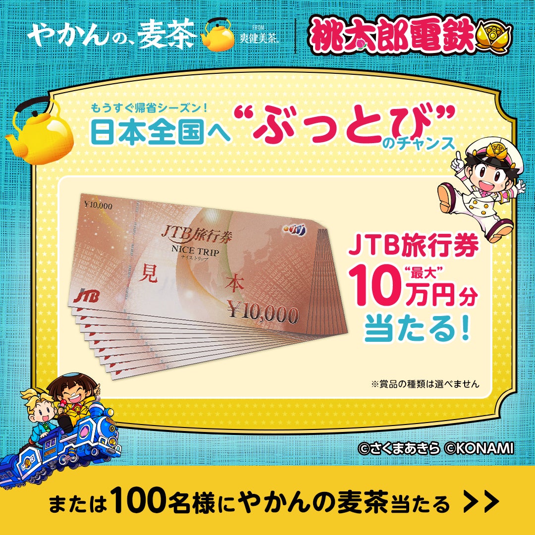 「やかんの麦茶」公式Instagramアカウント(@yakanno_mugicha)をフォローのうえ、対象の投稿に“いいね”をすると、「帰省などで使えるJTB旅行券(10万円分/5万円分)」を、抽選で合計6名様にプレゼント。また、「やかんの麦茶」製品1本と引き換えができる「Coke ONドリンクチケット」が抽選で100名様に当たります。是非キャンペーンに参加して、お盆や夏休みなどの帰省のお供に、「やかんの麦茶」をお楽しみください。
