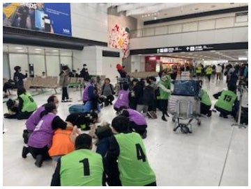 ⚫ 参加者:JAL グループ社員を含む空港従業員 約60名 慶應義塾大学大木ゼミ学生 約40名(お客さま役など)
