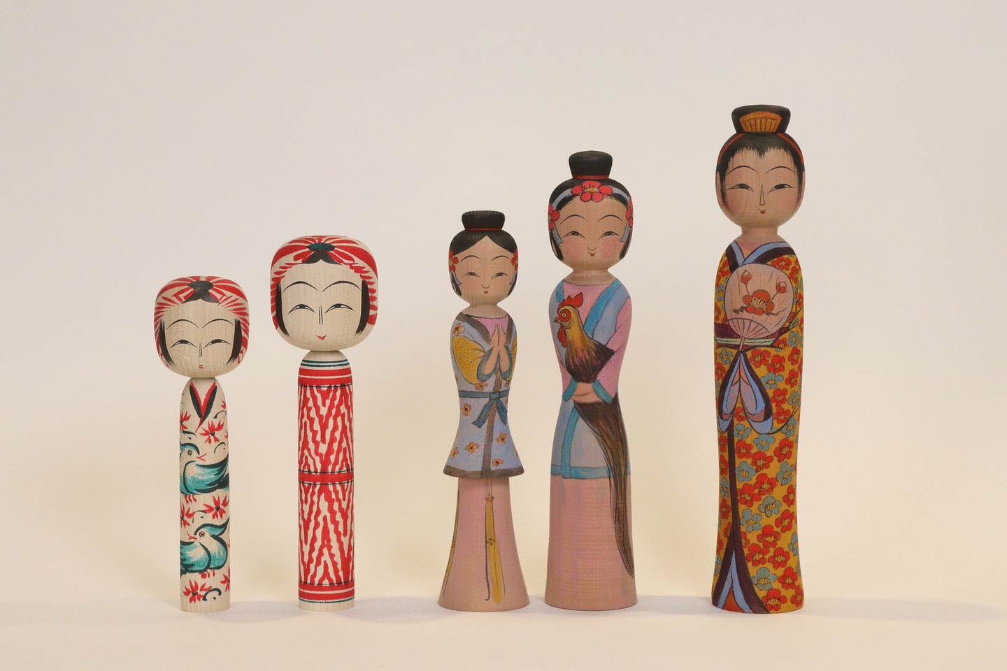 さらに、英太郎氏が伝統を昇華させた「木地人形」は、伝統的な装飾とは一線を画す鮮やかな色彩と緻密さ、自由でのびのびとした美しさで見る者を魅了します。