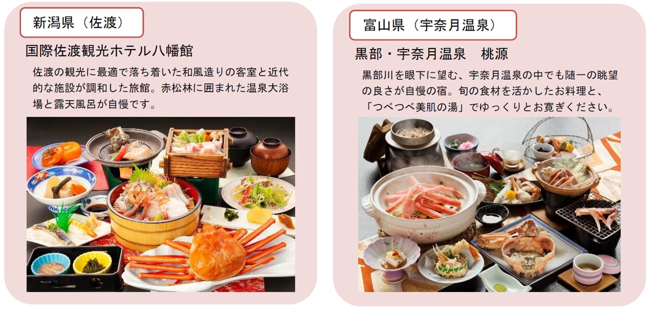 主な旅行会社でも日本海で獲れる海の幸を堪能する旅行商品を発売します。詳細は各旅行会社のパンフレット等をご覧ください。