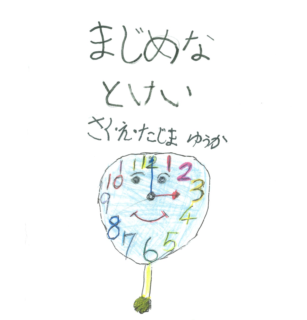 えらばれたときはびっくりしました。この話は、とけいを見て思いつきました。とけいのせいかくを考えたときに、時間をおそくしたり早くしたりするのがおもしろいと思いました。絵も細かいところまでこだわりました。えらんでくれてありがとうございます。