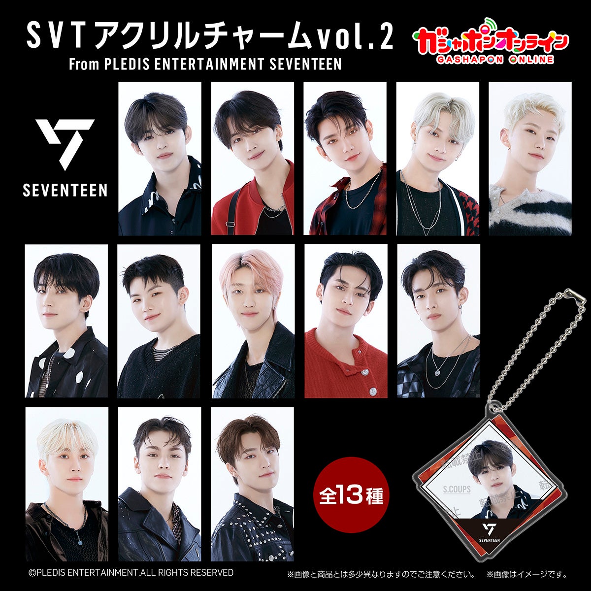 大人気グループSEVENTEENの新規撮りおろしカットを使用したアクリルチャームが登場!