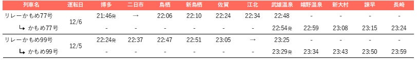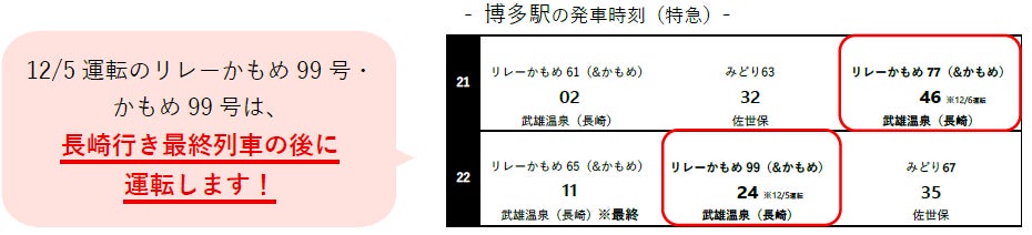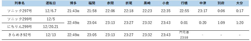※にちりん299号ならびにきらめき92号は11月20日(木)に反映されます。