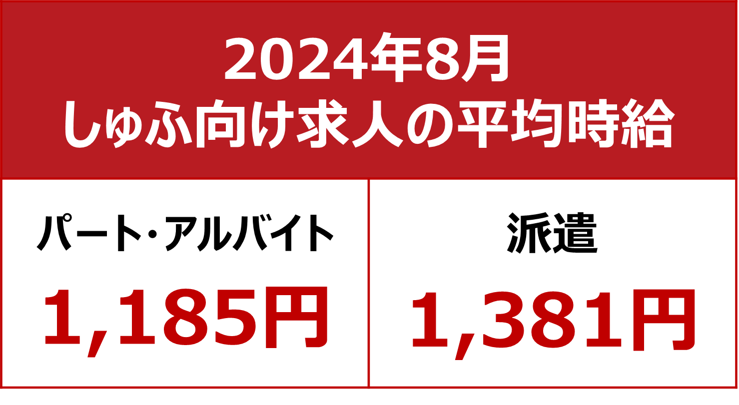 【2024年8月しゅふ求人の平均時給】パート・アルバイト:『1,185円』、派遣:『1,381円』/パート時給過去最高!最賃改定の影響か