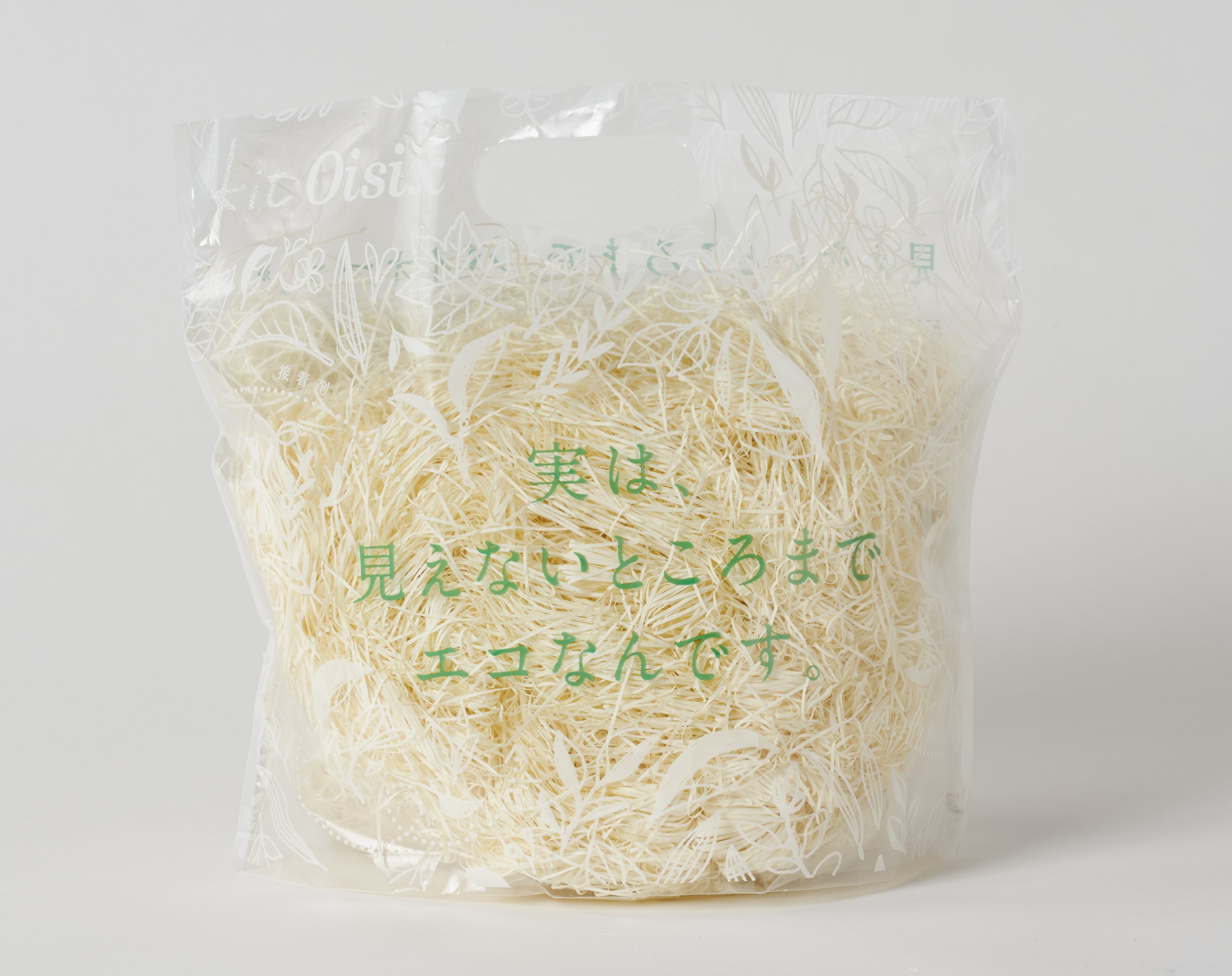 現在、Oisixの会員数は368,378人(2024年6月末時点)で、日本全国の方にご利用いただいています。毎週多くのお客様にご利用いただくからこそ、目に見えないところまで環境負荷削減に取り組みたいという強い思いから、商品に使用する包材やダンボールを環境に配慮した素材に順次変更しています。2020年4月からは、Oisixのミールキット「Kit Oisix」のパッケージを構成するすべての要素(外袋、インク、レシピポケット、接着剤、中袋)でのバイオマス配合素材の使用を開始。接着剤までがバイオマス配合素材という事例は国内でもほぼなく、累計約82トンのプラスチックを削減しています※1。さらに2024年2月からは、お客様への食品お届け時に使用している冷蔵・冷凍すべてのダンボールで、漂白剤・着色剤不使用の古紙を100%使用。ご家庭への配送時に必要な強度は保ちながら、ダンボールを生産する際の環境負荷を最低限に抑えることができ、累計約370トンの資源節約に貢献しています※2。