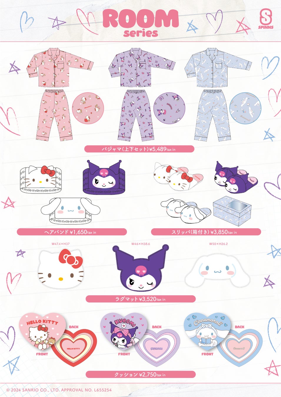 今回のコラボは「ROOM series( ルームシリーズ )」と題し、サンリオの人気キャラクターたちと共におしゃれなルームアイテムを企画いたしました。着るだけで気分が上がるような総柄パジャマや、歩くたびにキャラクターの耳がぴょこぴょこ動く遊び心たっぷりのスリッパなど、お部屋を一瞬で可愛く彩る全5種のラインナップです。ご自宅でのくつろぎタイムはもちろん、友達とのお泊まり会やパジャマパーティーなどでも大活躍すること間違いなし。お気に入りのキャラクターと一緒に、特別な時間をさらに盛り上げましょう。