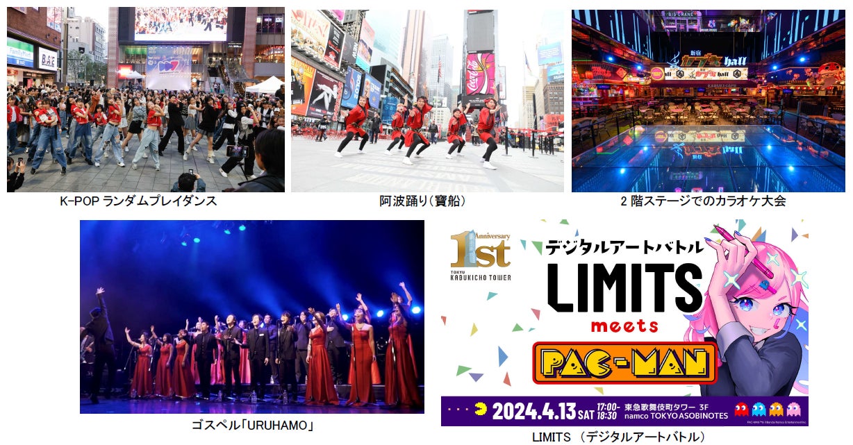 タワー内および歌舞伎町シネシティ広場にてK-POPダンスバトルや阿波踊り、ゴスペル、路上ライブといったパフォーマンスイベントから、お客さまにもご参加いただけるカラオケ大会などエンタメコンテンツ盛りだくさんで1周年を盛り上げます。