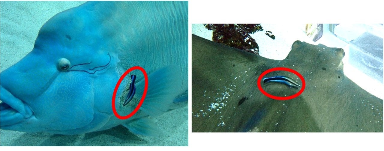 小さな魚からエイのような大型魚まで、さまざまな魚たちの掃除を行います。