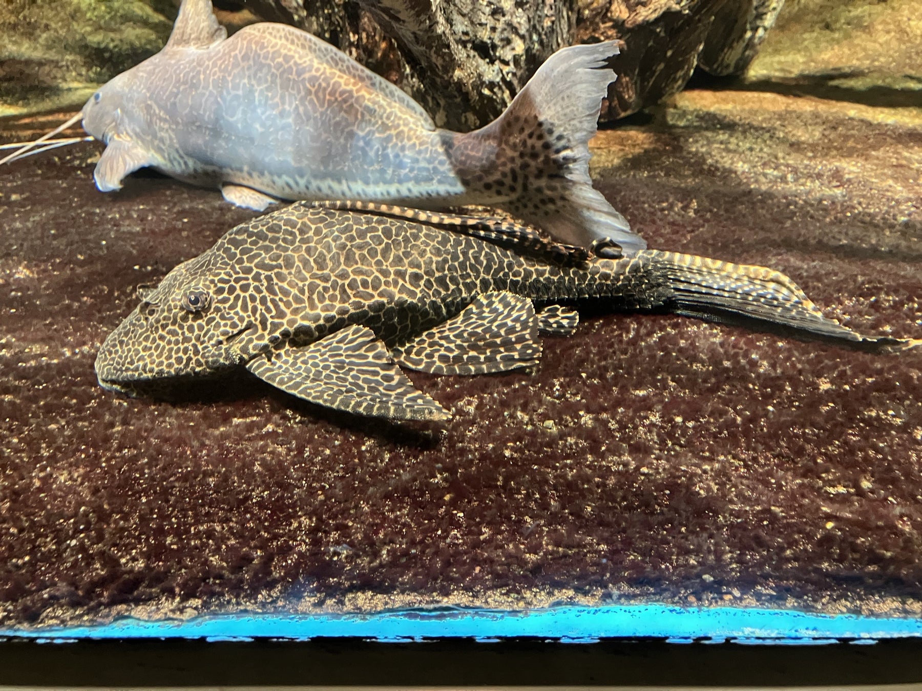 セルフィンプレコはアマゾン川全域に生息するナマズの仲間で、黒褐色や茶褐色の体色に迷路のような模様をしています。
