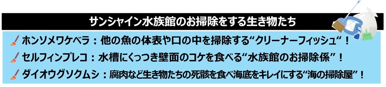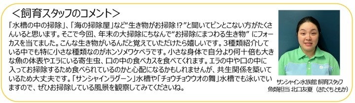 サンシャイン水族館(東京・池袋)では、12月26日(木)~31日(火)の期間、「年末の大掃除」にちなみお掃除をする生き物を紹介するパネル展示を行います。