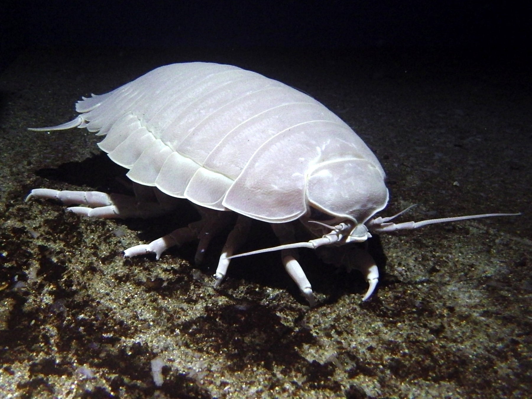 深海生物の中でもかなりの人気者、ダイオウグソクムシは陸上で生活するダンゴムシやワラジムシなどと同じ仲間で、等脚目の中で世界最大種です。