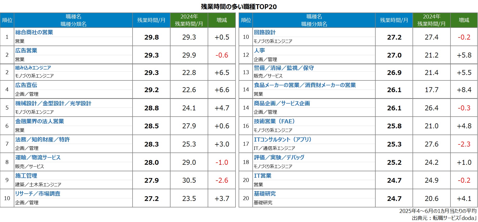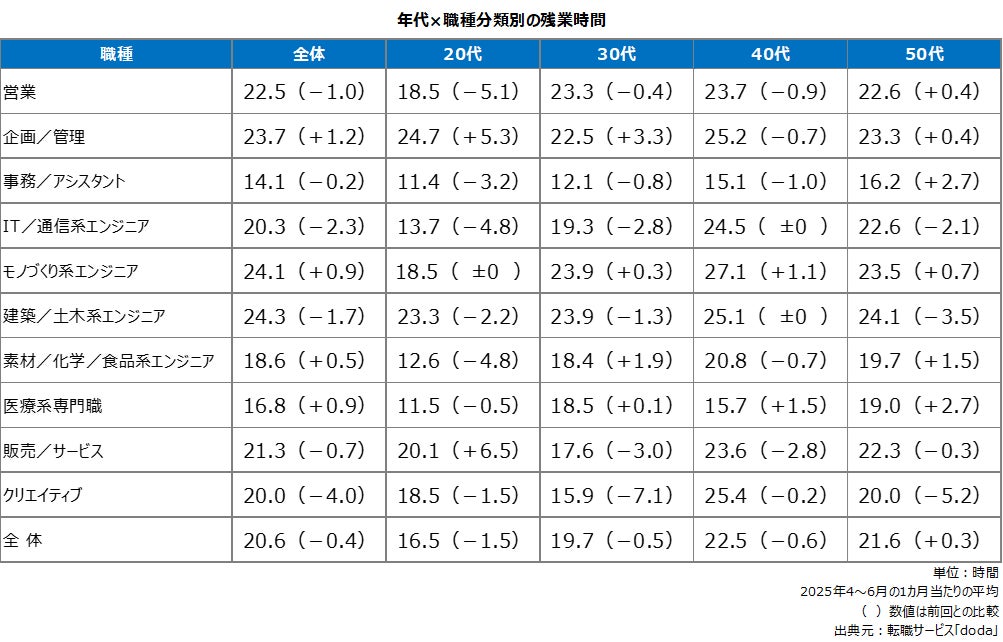 ※「平均残業時間の実態調査【2025年版】」= https://doda.jp/guide/zangyo/