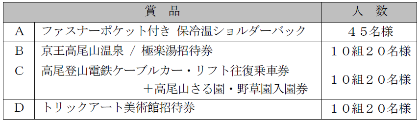 ③さらに、そば店または高尾山商店会23店舗でもう1個スタンプを貰い、高尾山口駅に設置の応募箱に応募用紙を投函すると抽選でプレゼントが当たります。