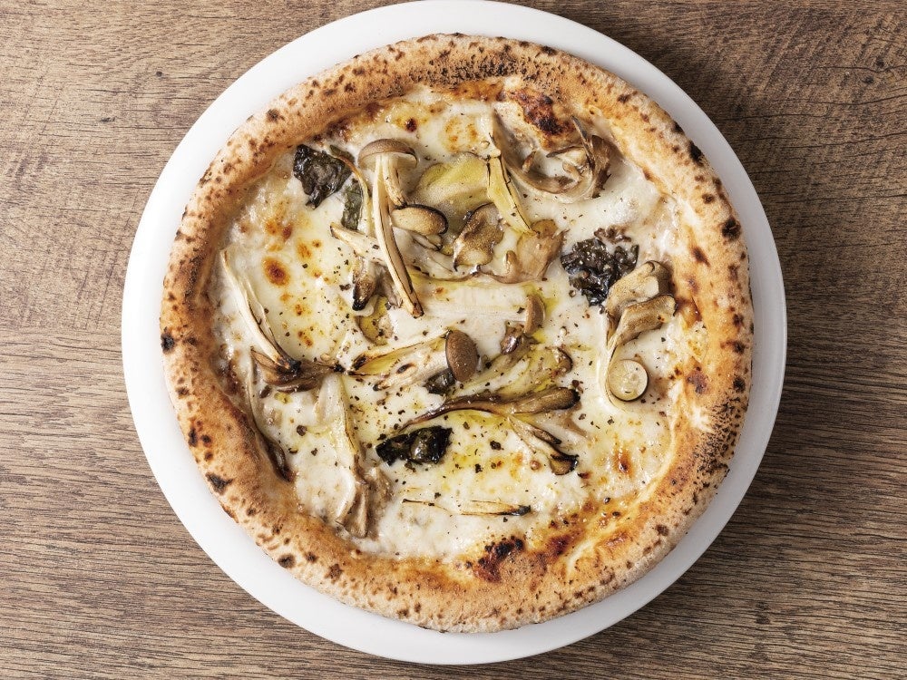 芳醇な香りのポルチーニ茸を加えたソースで仕上げた人気のピッツァ