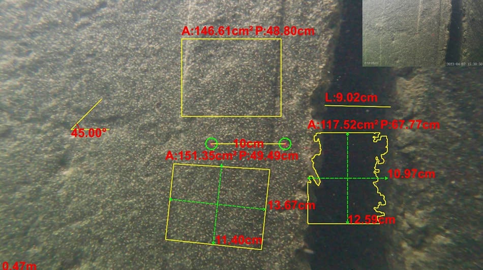 また、今までは深浅測量時に近接目視点検を兼ねるのは難しく、別日に潜水士による調査を実施していましたが、FIFISH E-MASTER NAVIは深浅測量と同時に近接目視点検+AI点検ができるので、調査日数の短縮とそれに伴う作業コストの削減が期待できそうです。