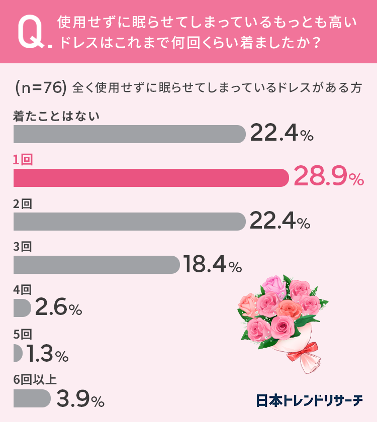 さらに、使用せずに眠らせてしまっているもっとも高いドレスは、これまで何回くらい着たか聞いてみました。