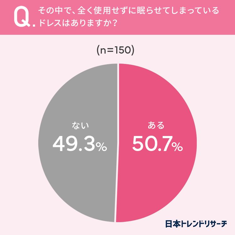 50.7%と半数以上の方が、まったく使用せずに眠らせてしまっているドレスが「ある」と回答しています。