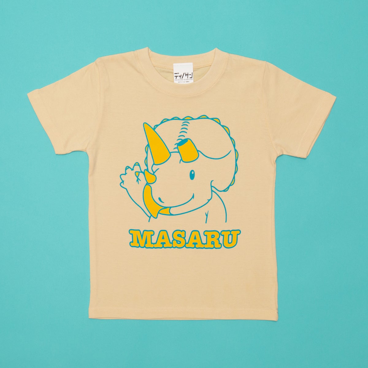 恐竜好きのお子様におすすめ、トリケラトプスの「マサル」がかわいいプリントTシャツです。