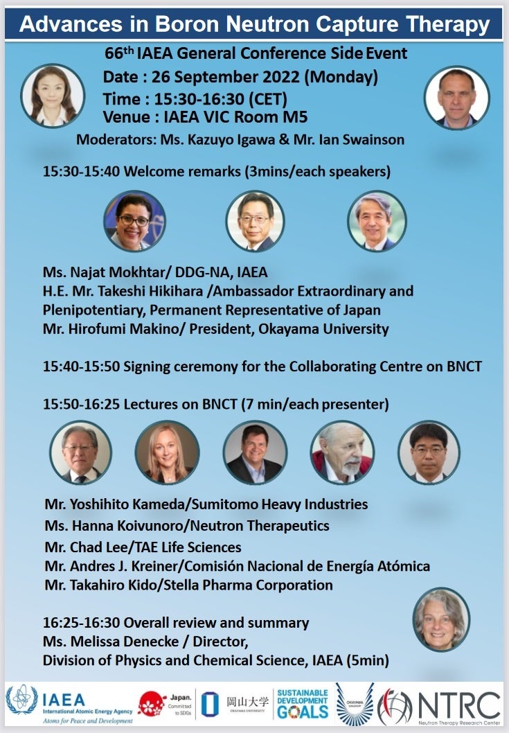 【岡山大学】国際原子力機関(IAEA)の第66回総会でサイドイベント「ホウ素中性子捕捉療法(BNCT)の進捗」を開催しました