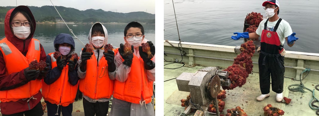 ホヤ漁師、渥美貴幸さんの漁船をお借りしてホヤの収穫体験を行いました。