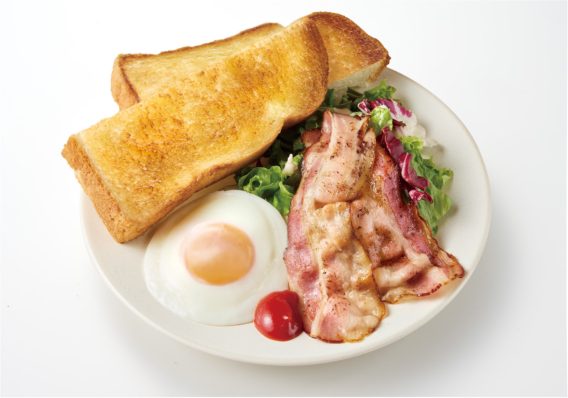 ②ベーコンプレートには、甘さの中に旨味がぎっしり詰まった「妻有ポークのベーコン」を使用。