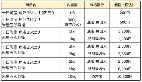 概要:十日町産魚沼コシヒカリの新米をはじめ、妻有ポークの加工品、米粉スイーツ