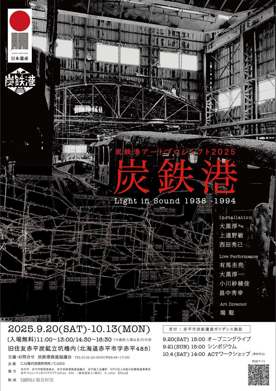 北海道の近代化に貢献した「日本遺産『炭鉄港』」の歴史や、産炭地が果たしてきた役割を幅広く伝え、これからの地域のあり方を考える機会を創出するため、「炭鉄港アートプロジェクト2025」を開催します。