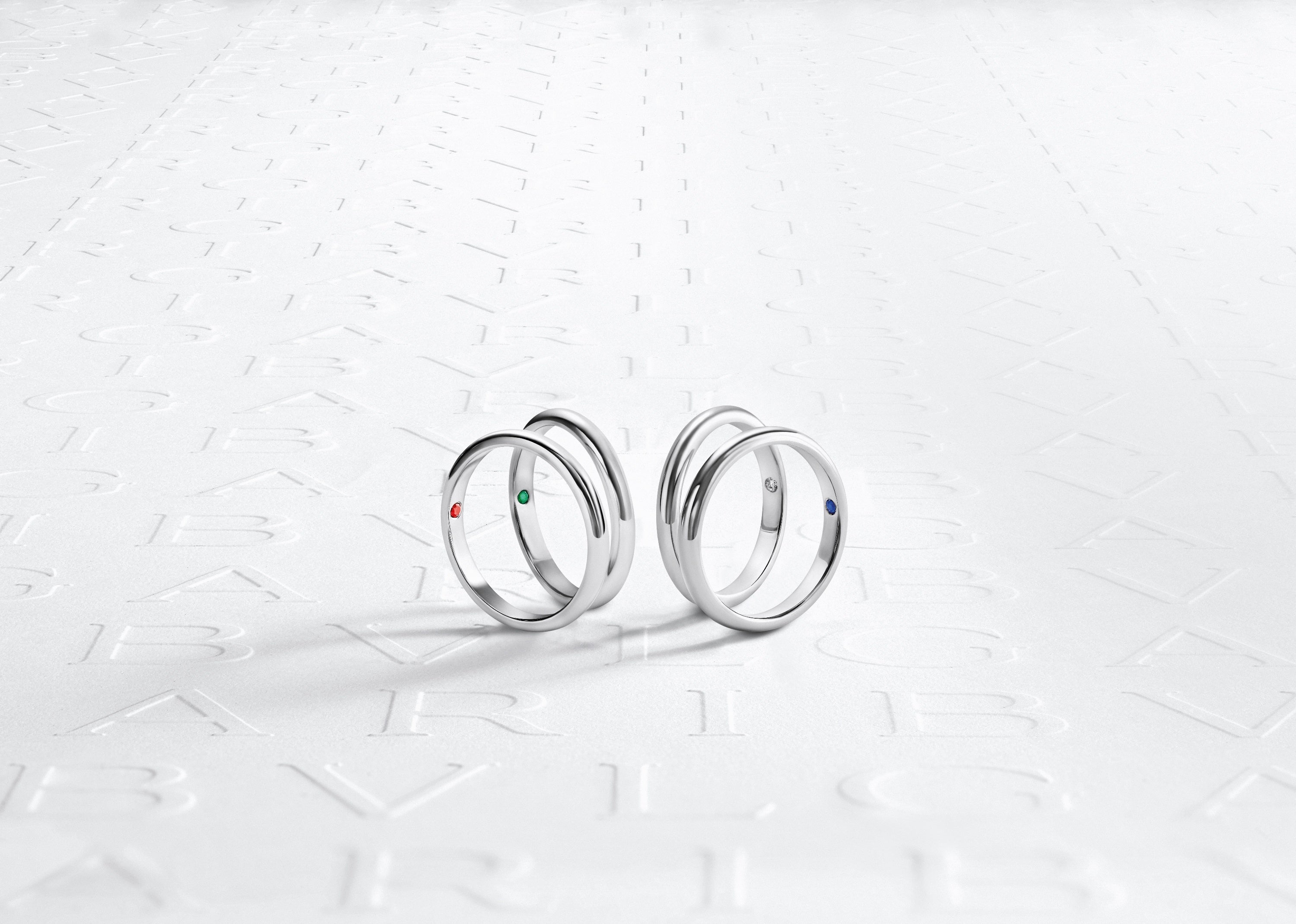 本フェアでは、今春デビューした「ローマ アモール」コレクションより登場した、ダイヤモンド、ルビー、サファイア、エメラルドの四大宝石からインナーストーンを選択し、イニシャルなどのエングレーブを施すことでカスタマイズされた世界にひとつだけのマリッジリングが、本フェアを皮切りに全国のブルガリ ショップにて発売されます。
