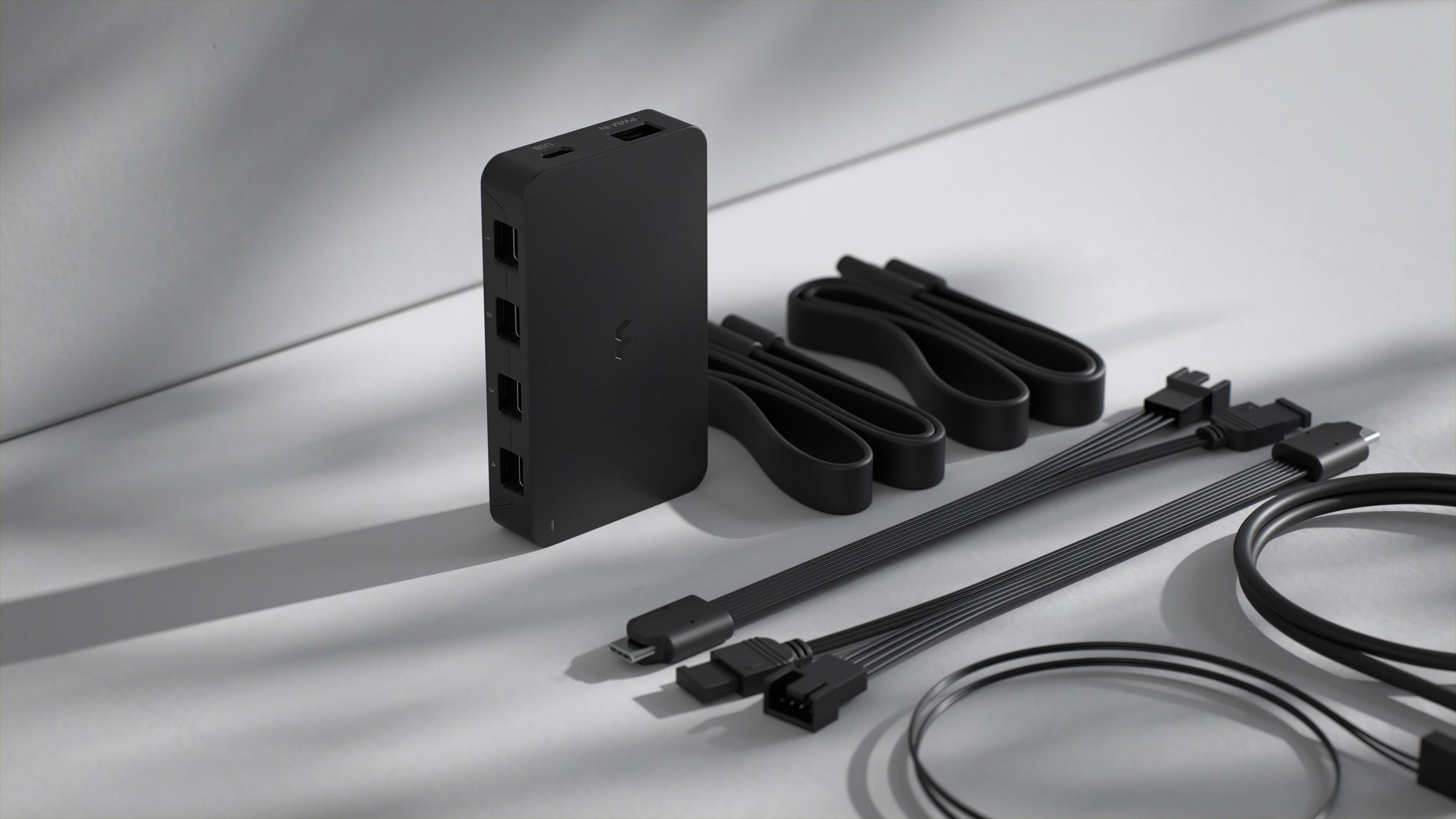 「Adjust Pro Hub」は、同社製のファンやアドレサブル Gen 2 RGBデバイスを、ウェブブラウザで簡単にコントロールできるアドレサブルRGBハブです。バックグラウンドでソフトウェアを起動する必要もなく、専用サイトにアクセスするだけでファンの回転速度やライティングを調整可能です。4つの一体型ポートはそれぞれ4基のデバイス接続に対応し、合計最大16基のデバイスを接続することができます。