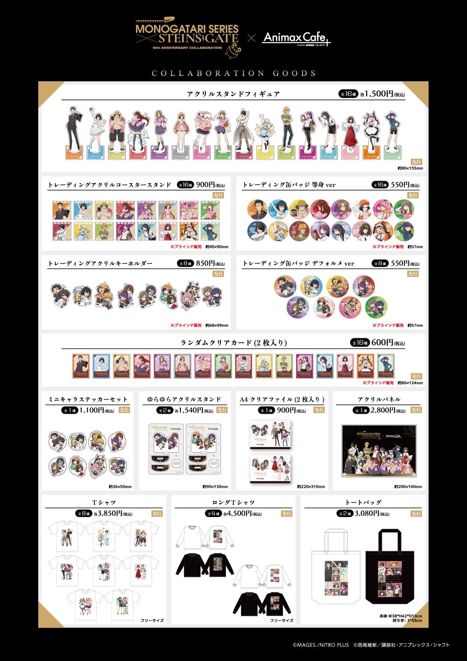 『STEINS;GATE』と『物語シリーズ』のコラボレーションカフェの限定グッズを、SPINNS公式通販で受注販売決定!