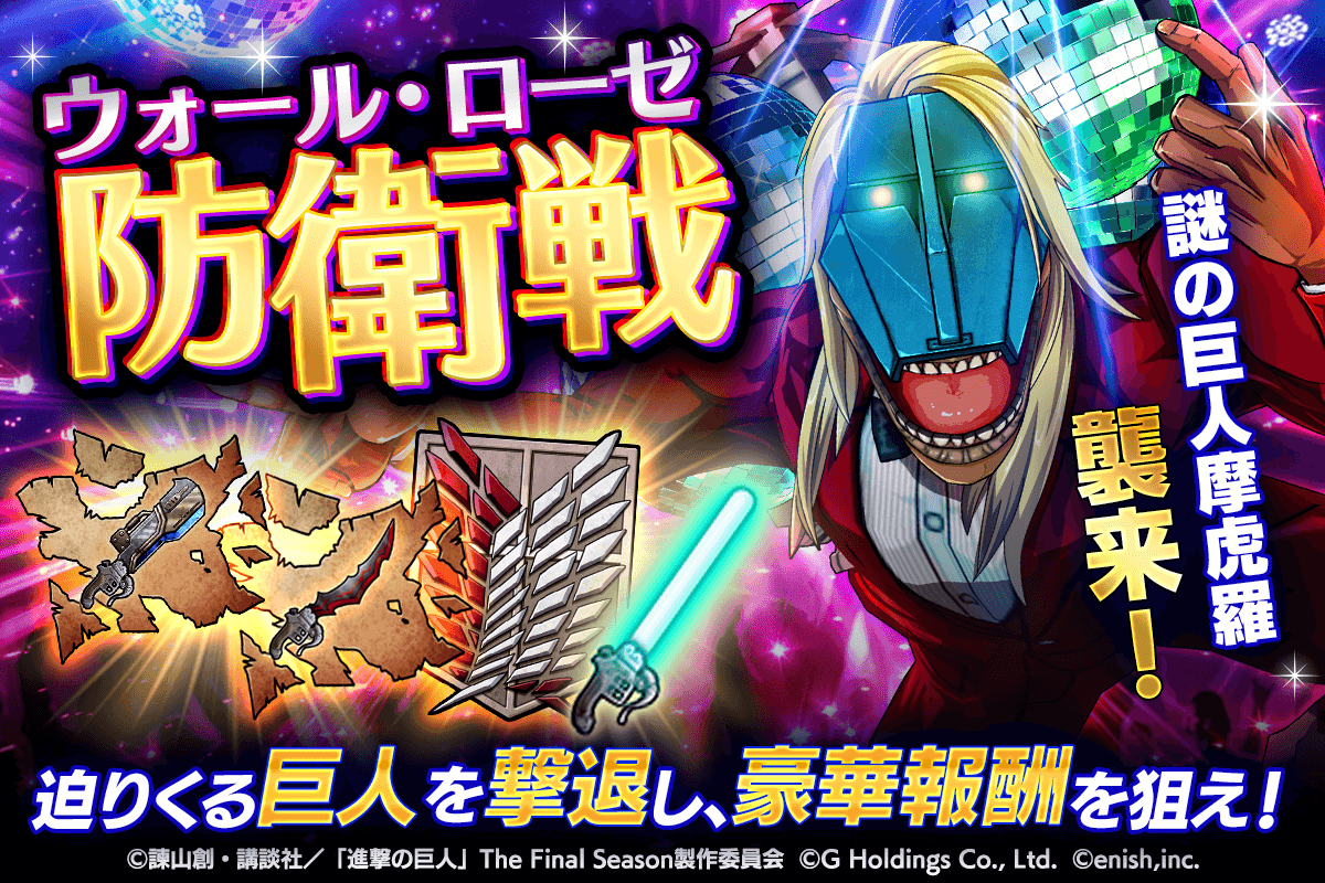 2024年10月31日(木)より、ウォール・ローゼ防衛戦に異形の巨人 摩虎羅が襲来! 自由の翼(特装専用)やグロースメテオールの製作図片など迫りくる巨人を撃退し、豪華報酬を狙え!