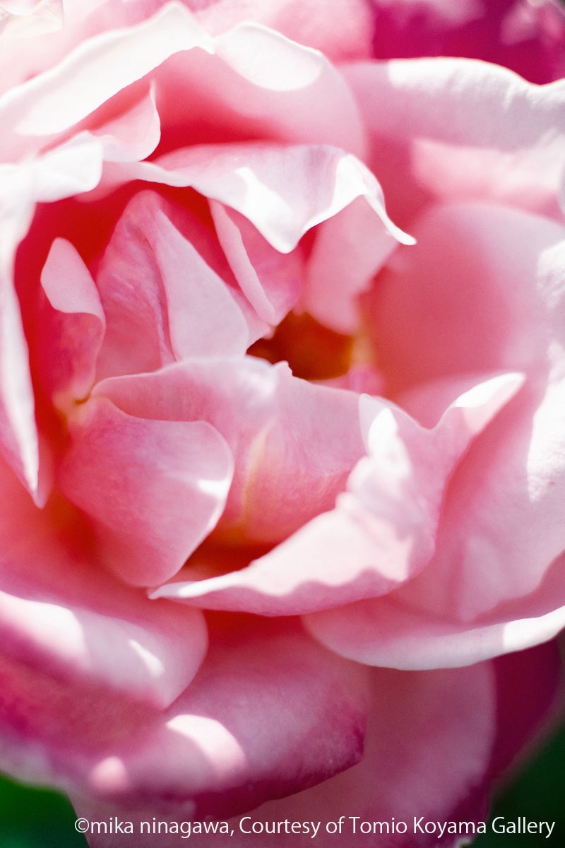 蜷川が撮影する生花の多くは、自然の中にあるがままに咲いている花ではなく、誰かにむけて育てられた花である。花は本来は種子を運ぶために昆虫の目を引きつけるものだが、人間社会との共存の中で、人々の暮らしに多様な豊かさをもたらすパートナーという側面でも繁栄してきた。蜷川は、その時々に自身が感じる情感とともに、人々に寄りそって咲く花々の姿を写し取ってきた。鑑賞者は、作品と向き合う中で、蜷川が感じてきた様々な情感をともに体験することができる。