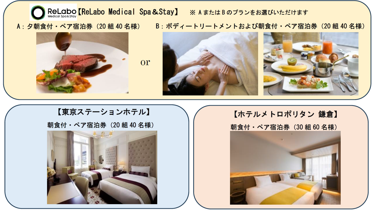 2024年7月オープン青森駅直結のウェルネス体験と宿泊が融合したReLabo Medical Spa&Stay他、東京ステーションホテル、ホテルメトロポリタン鎌倉の宿泊券を抽選で90組180名にプレゼント!