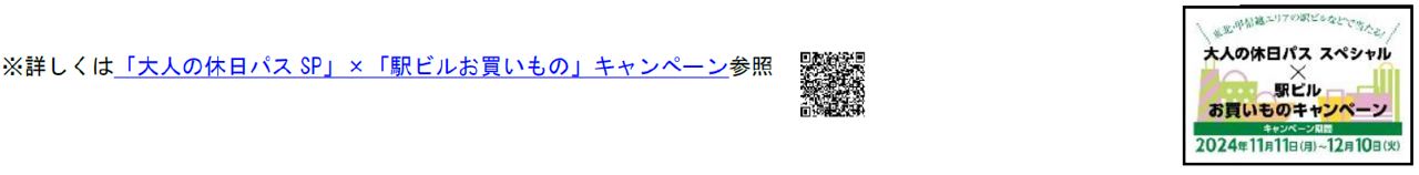 ・「大人の休日パスSP」×「駅ビルお買いものキャンペーン」開催!