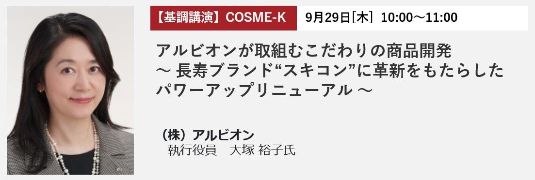 https://biz.q-pass.jp/f/5184/cosme_seminar_osaka2022/seminar_register?co=prtimes0914基調講演に、アルビオン執行役員の大塚氏が登壇いたします。